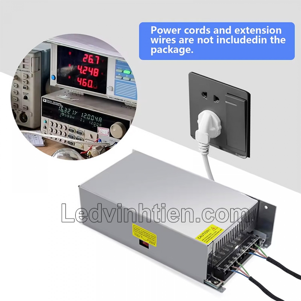 - Bộ nguồn này sử dụng đầu vào AC 220V. Kiểm tra kỹ nguồn điện để đảm bảo phù hợp và ổn định.