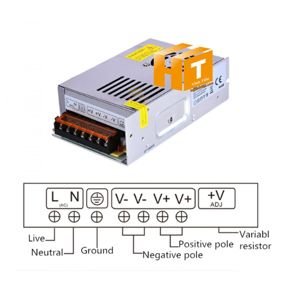 Ký hiệu đi dây của bộ nguồn 24V 10A loại tốt, giá rẻ