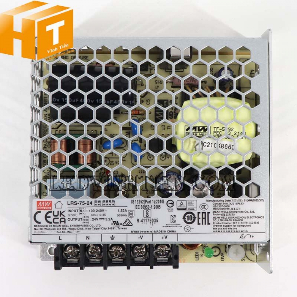 Hình ảnh chi tiết của nguồn điện (xung, tổ ong) 24VDC 3.2A, LRS-75-24, chính hãng Meanwell