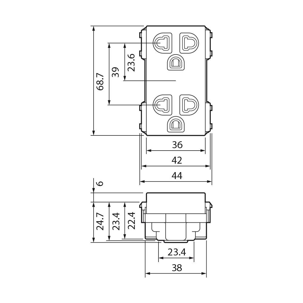 - Đế: Bộ phận này sẽ được áp cố định vào từng định hình vị trí của thiết bị điện công tắc với các ổ cắm tương ứng. Đây cũng được xem là bàn đỡ cho nắp che ổ cắm.