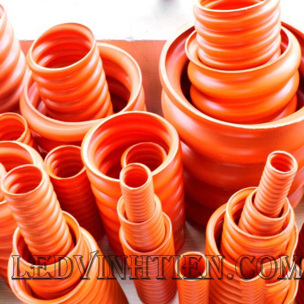 - Ống ruột gà cam hay còn gọi là ống gen luồn dây cáp điện (Plastic flexible conduit) hoặc ống nhựa xoắn HDPE – Ống chôn cáp ngầm.