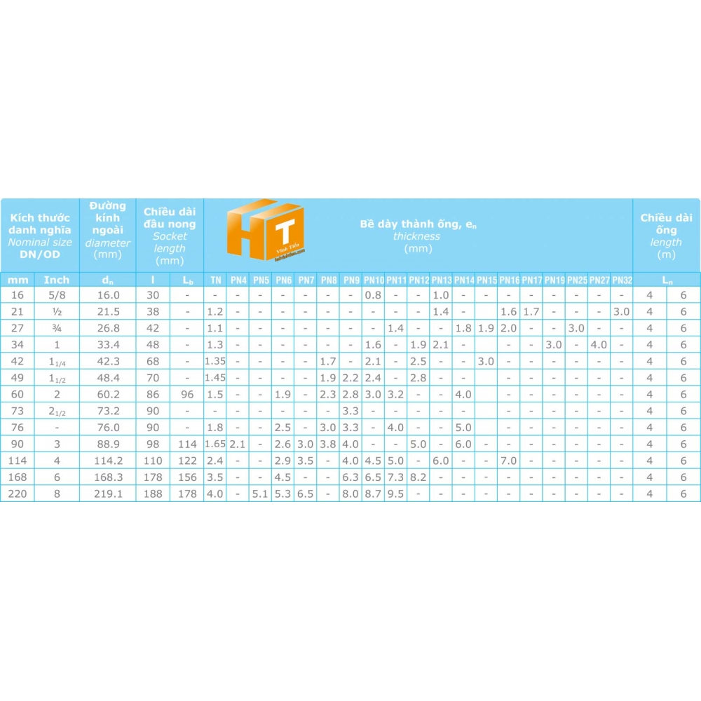 Thông số kỹ thuật ống nhựa UPVC hệ inch loại tốt, giá rẻ, chiết khấu cao, chính hãng Đạt Hòa