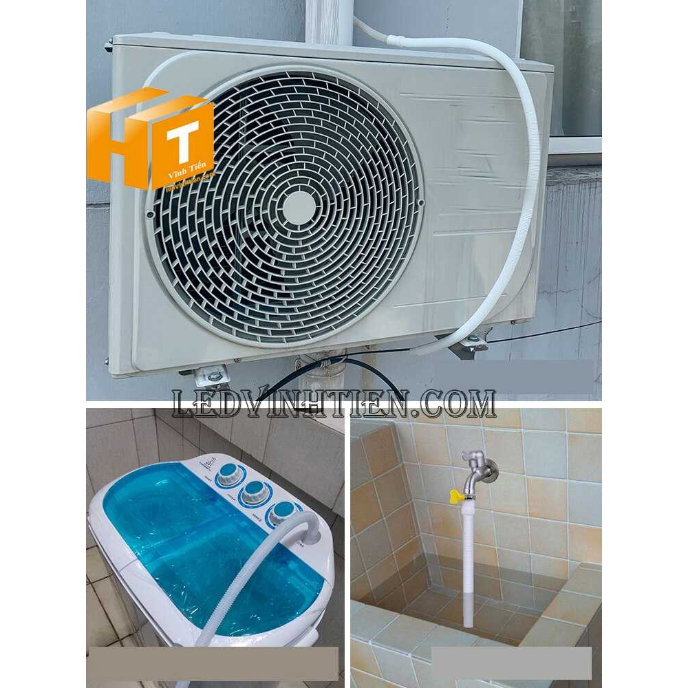 - Đặt ống luồn theo ống đồng máy lạnh rồi gắn ống vào lỗ thoát nước đầu lạnh, đầu còn lại đưa ra ngoài trời