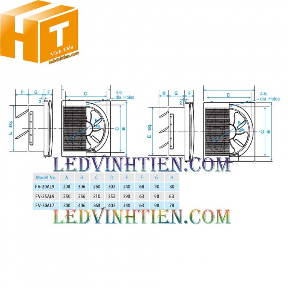 Đóng gói bao gồm: 1 x quạt hút âm tường FV-20AL9