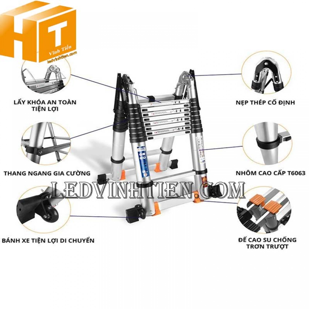 Đặc điểm công dụng của thang nhôm rút đôi, chiết khấu cao, Chính hãng Vĩnh Tiến