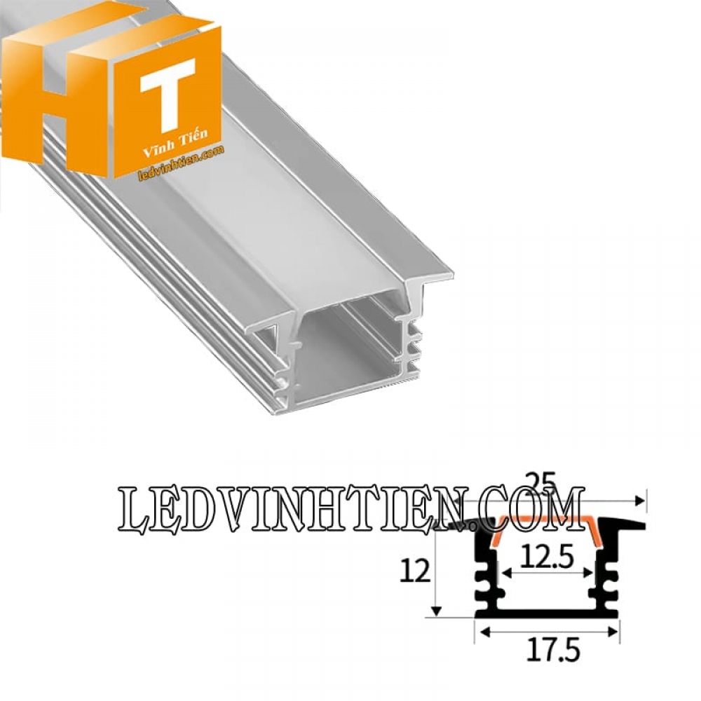 Hình thông số kỹ thuật thanh nhôm định hình led âm 25x12mm