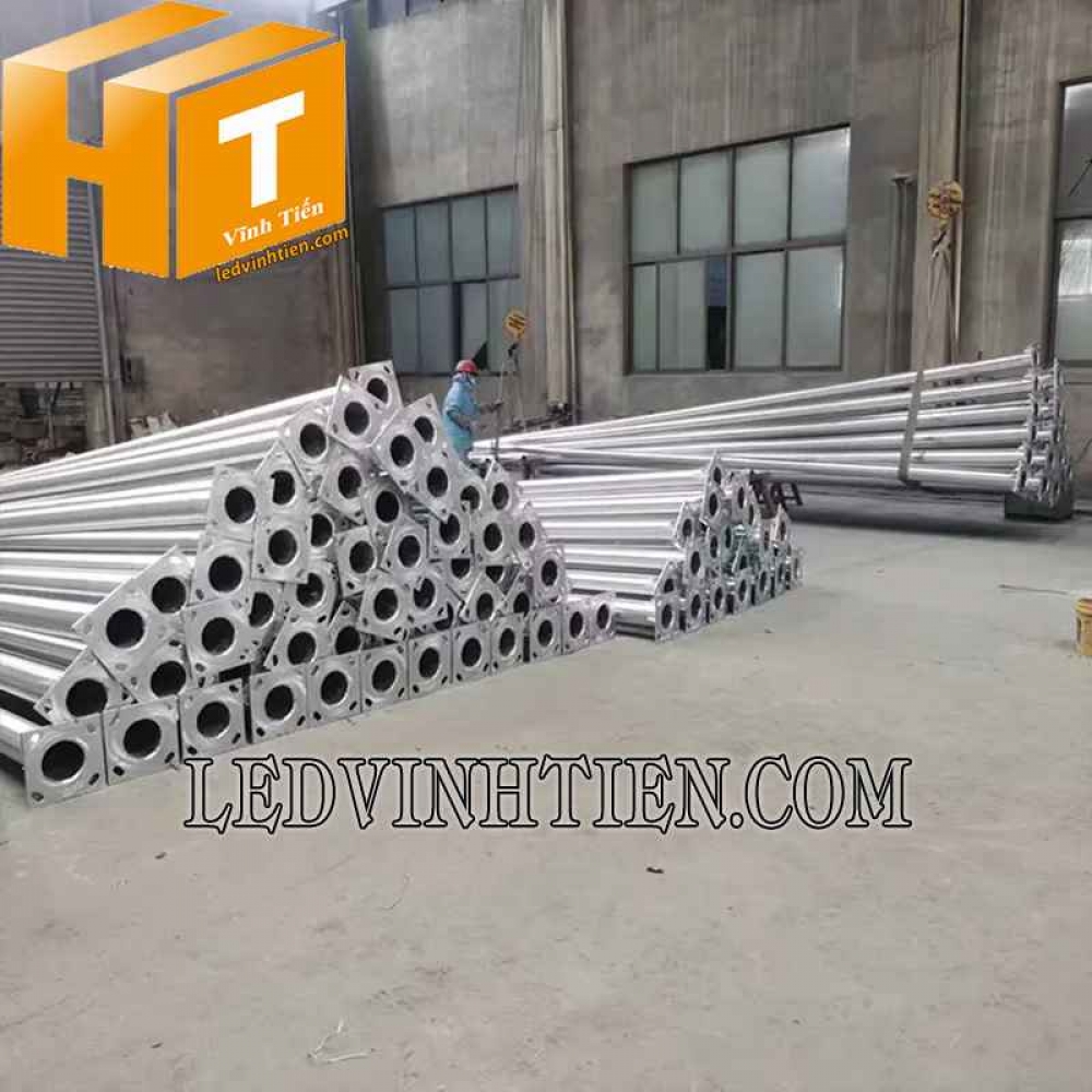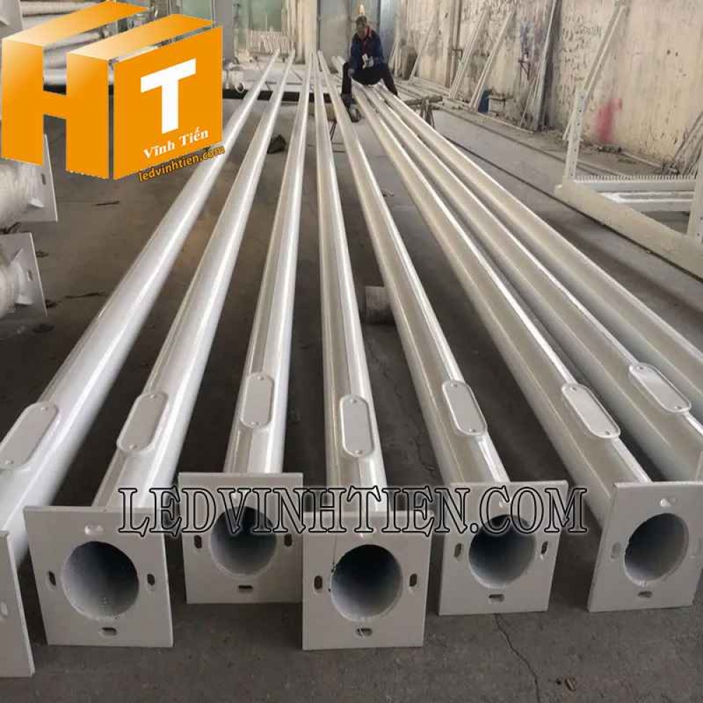 - Cột đèn có chiều cao từ đế cột đèn đỉnh cột thông thường từ 4 đến 12m, được hàn dọc từ 8 miếng thép lại với nhau.